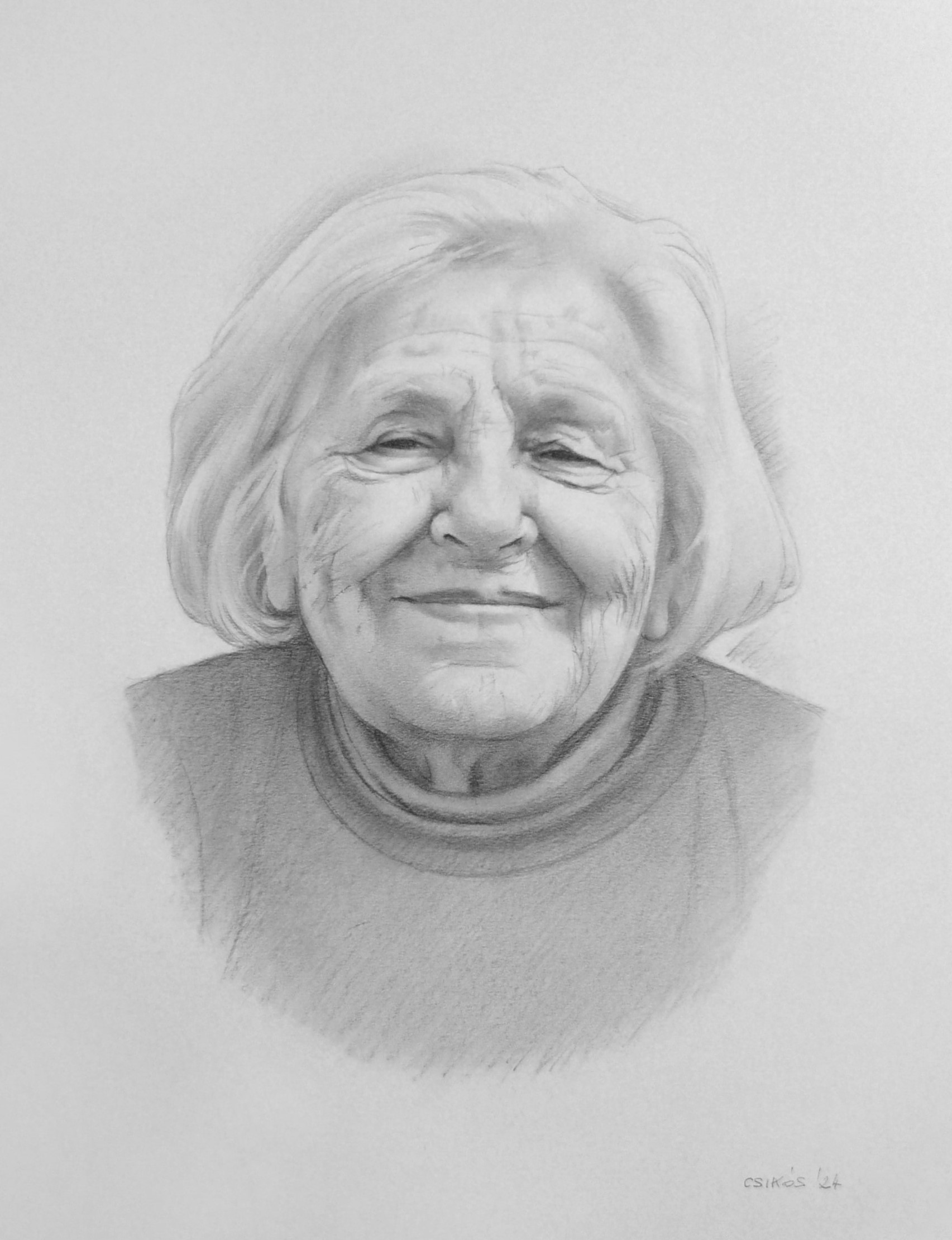 Idős hölgy, grafitceruza